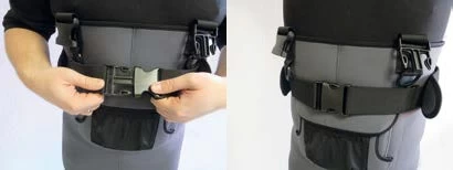 The great thing about this model is that this wading suit can also be used as a waist model. The shoulder straps can be reversed and then serve as a waist belt. This can be a solution for people who, after wading for a long time, experience a pulling sensation in the shoulders or lower back as a result of the shoulder straps on a wading suit. The change to a waist model is then very pleasant.