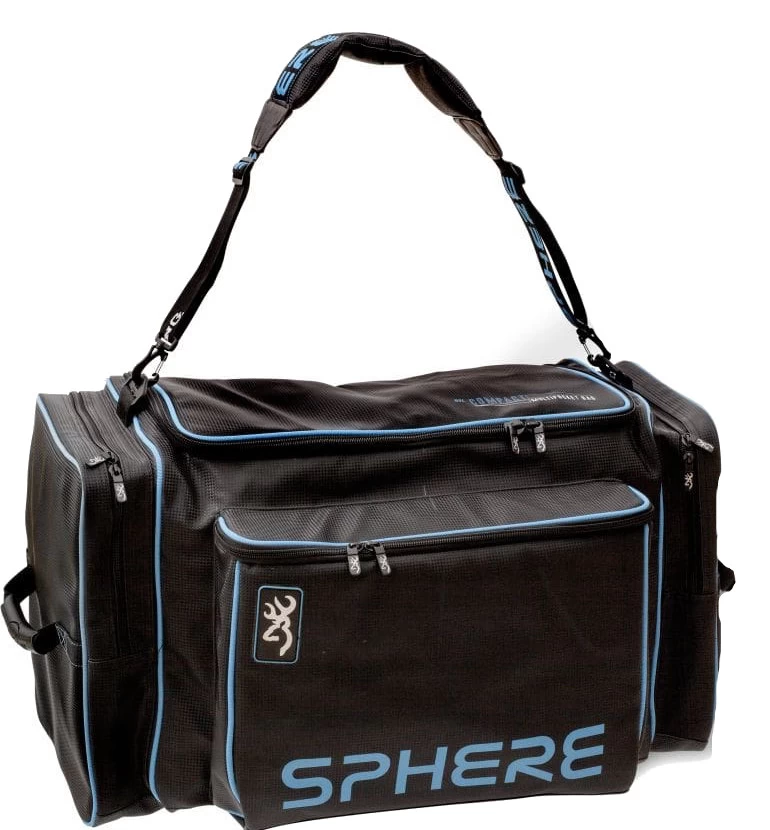 Browning’s Sphere brand stands for products with innovative design and premium+ quality, for anglers who want only the best. Sphere bags are manufactured in a very high quality, special PVC material with an eye-catching carbone effect finish. It looks good, it is durable and very practical. The Sphere Multipocket carryall features a large main compartment with a spacious zipper with flap and a lining that is easy to clean. The large front and side pockets are ideal for storing various accessories. The sturdy bottom prevents wear and tear on the bag. The padded shoulder strap and side handles ensure comfortable transportation.
