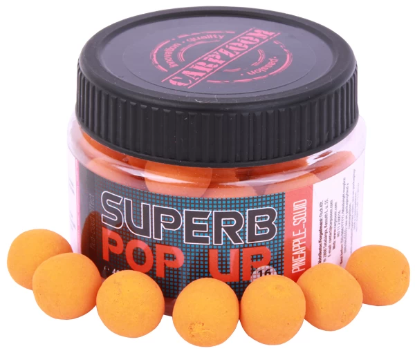 The Superb Pop Up boilies will easily attract fish to your hook. As soon as the boilie comes in contact with the water it will create a cloud of scent and colour that is simply irresistible to fish. The sturdy structure of the boilie allows you to easily make long casts. Ideal for every carp angler!