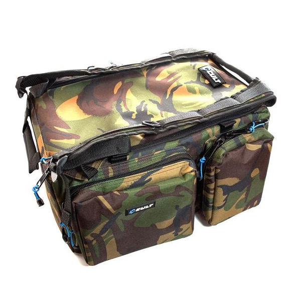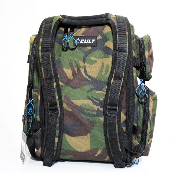 This bag from Cult combines the convenience of a backpack with the space of a carryall. You have a very spacious inner compartment and three separate side pockets. The back side is extra reinforced to protect your back. Padded carry straps provide extra carrying comfort. Made of solid dirt- and water-repellent DPM material with strong camouflage print.