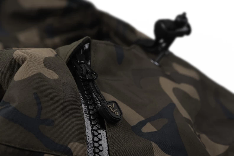 The Fox Aquos Tri Layer ¾ Jacket is perfect for those sessions when the weather doesn’t cooperate. It is made from a three-layer laminated TPU, which means it is both waterproof and breathable. All seams are fully taped to ensure waterproofness. The jacket comes in a three-quarter length version so it’s just a bit longer than the average jacket. This ensures that your jacket never creeps up during your activities on the bank, thus it keeps you warm and dry during snow or rain. The hood is fully adjustable and has a peak on the front to prevent rain from entering. The jacket is lined with double 2-way waterproof YKK zippers, both the main zipper and the pockets. All cuffs are made of neoprene, which makes it comfortable to wear. In short, a complete jacket for all conditions!