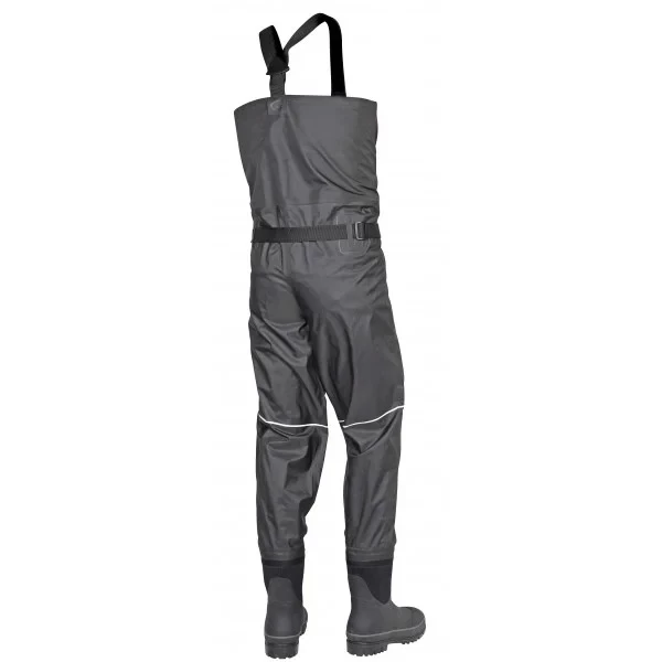 These waders by Gamakatsu are made of Taslon nylon material with sturdy rubber boots. The advantage of this material is that it is sturdy but also breathable so you will not sweat in hot temperatures. The fit is perfectly adjustable with the adjustable shoulder straps and the belt with snap closure around your waist. The boots have a soft neoprene inner lining and a sturdy sole with non-slip sole for safe fishing on wet banks. On the front there is a spacious, waterproof chest pocket to store your valuables. Executed in discreet grey colour with Gamakatsu branding.