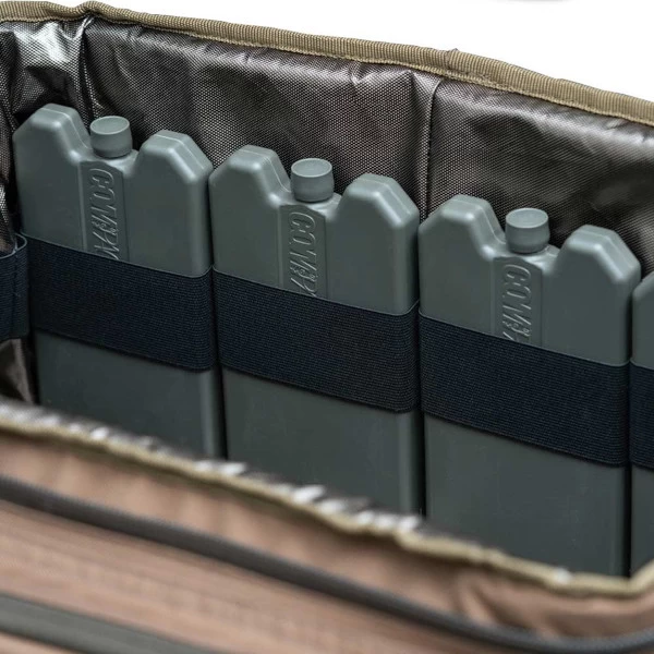The Korda Compac Cool Bag XL is a luxurious cool bag with a stylish design, made from very strong materials. The bag comes with four Cool Packs that can be stored in the specially designed internal straps. The robust heavy-duty zippers with double zipper pulls are very sturdy and ensure a good seal. The fully padded removable shoulder strap ensures optimal carrying comfort. In the front pocket you can put extra accessories such as cooking utensils or cutlery, so everything is organised in one bag. The material used is durable and water resistant. The bag also has reinforced handles so you can easily take it with you to your spot. All in all, a very luxurious cooler bag with a stylish design of absolute top quality!