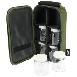 The Glug Bag with 6 included glug pots is ideal for holding pop ups, glugs or hookbaits. The bag holds 6 pots, so plenty of room for all of your bait!