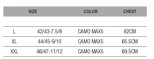 This Prologic Max5 Taslan Wading Suit is made from robust taslan polyester with pvc coating. The integrated and fully neoprene lined PVC boots close watertight and form nicely around your feet for ultimate comfort. The adjustable braces click onto the suit using a sturdy buckle system. At the back, the braces are connected to the suit in the H-style to distribute the weight of the suit evenly over the shoulders. This comfortable wading suit from Prologic is neatly stylishly finished with a cool camo pattern. Furthermore, there is a water resistant zippered front pocket on the chest of the suit.