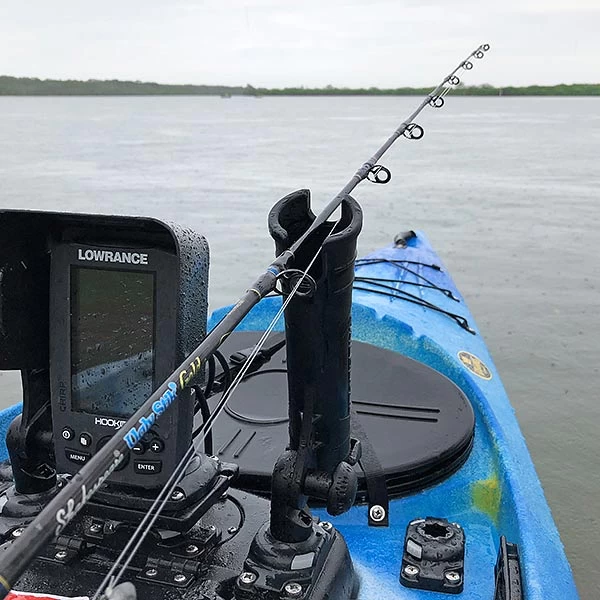 The Railblaza Rod Tube is ideal for kayaks where it is desirable that the reel and rod are upright and away from waves. The innovative folding extremity allows the rod to stay high and to be further extended.