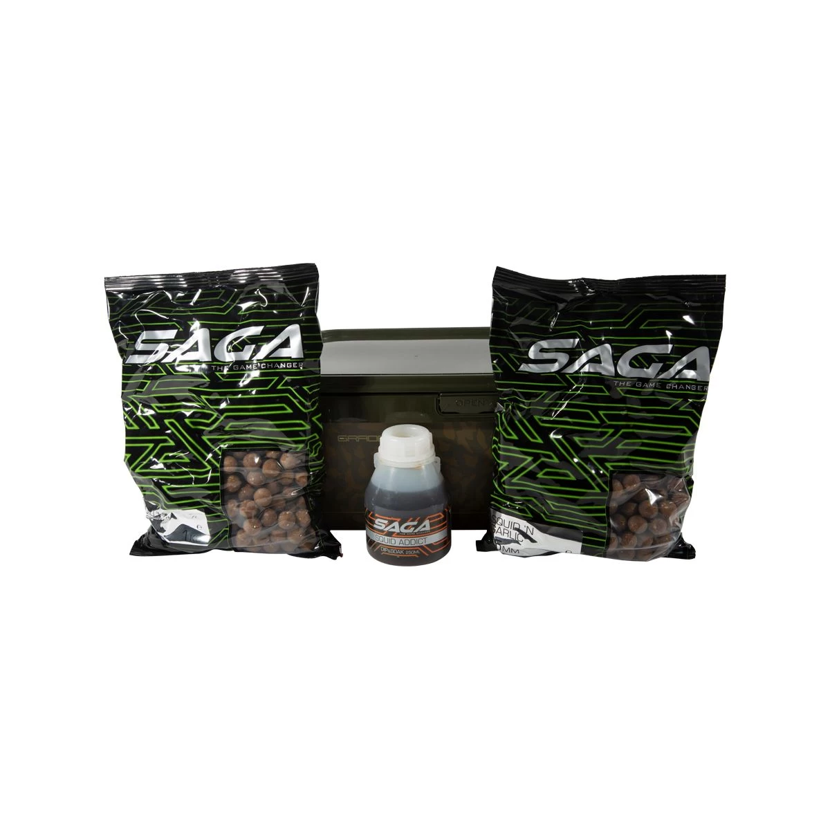 The Saga Squid & Garlic Bucket Deal consists of high quality boilies which are manufactured from a high quality fish mix full of herbs and spices. In particular, the specific garlic smell and taste, provide the feeling of confidence, which the carp angler is always looking for. This unique composition is designed for optimal versatility and astonishing results, where the accompanying dip provides even more attraction. The perfect mix for the serious carp angler!