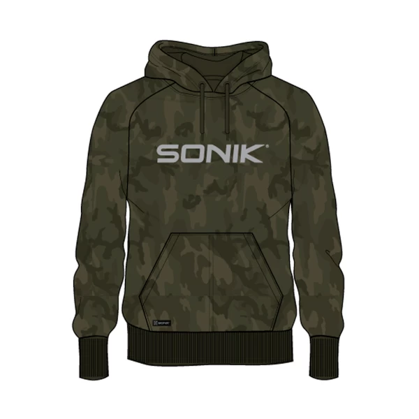The new Camo Hoody from Sonik is a very comfortable, stylish hoodie of good quality. This hoodie features a double layer hood for extra comfort. The hoodie itself is made of three threaded fleece, 300 GSM material consisting of 80% cotton and 20% polyester. This combination of materials provides good warmth and comfort. Other features include elastic cuffs, drawstrings at the hood and convenient front pockets. Finished in a stylish camo print with a Sonik logo on both the back and front.
