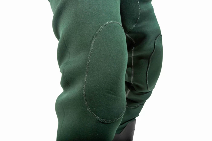 This wading suit from Ultimate is made of 4.8mm thick neoprene with high thermal properties. Perfect for winter or inclement weather fishing! The suit is 100% waterproof and has a comfortable fit. The heavy-duty boots are made of high-quality rubber and offer great grip thanks to the extra profiled sole. The suit is reinforced at the knee and crotch area with a double layer and features a spacious chest pocket. The wide shoulder straps are equipped with Velcro fasteners making it easy to put on and take off the suit. Available in sizes 41 to 46.