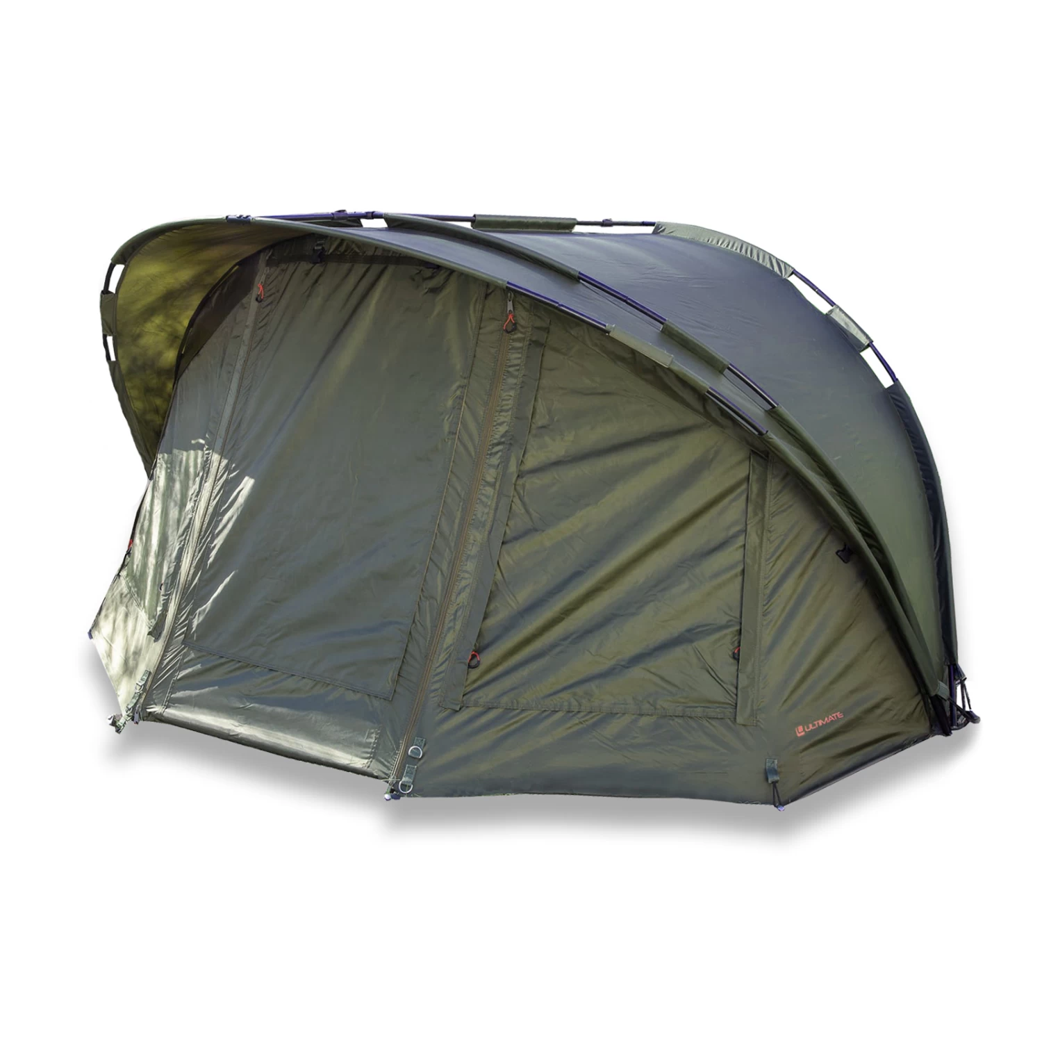 The Bionic Bivvy is a very solid bivvy that is suitable for one person and offers a lot of space. The tent has a waterproof index of 10000mmHH which means you will stay bone dry even in heavy rain! The metal frame is very robust and can withstand harsh weather conditions and the entrance can be closed in several ways: fully closed, transparent PVC and with mosquito netting. The tent is easy to set up and comes complete with T-shaped pegs, spacious carrying bag and a heavy duty groundsheet.