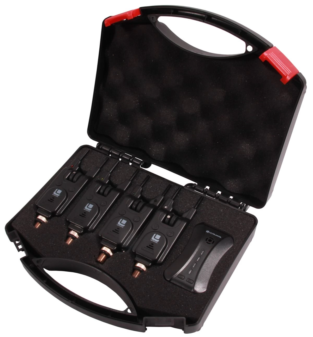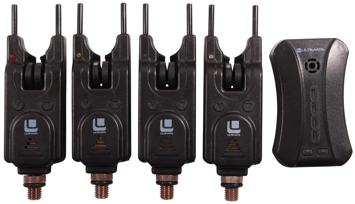 This Storm Bite Alarm set from Ultimate consists of 4 bite alarms with a matching receiver. The set is 100% waterproof and has many features. Each bite alarm has a nightlight function, detachable snag ears, volume and tone settings and memory function. The bite alarms are intuitive and easy to use and are excellent value for money. The set is conveniently packaged in a deluxe hard case for safe storage and transport.